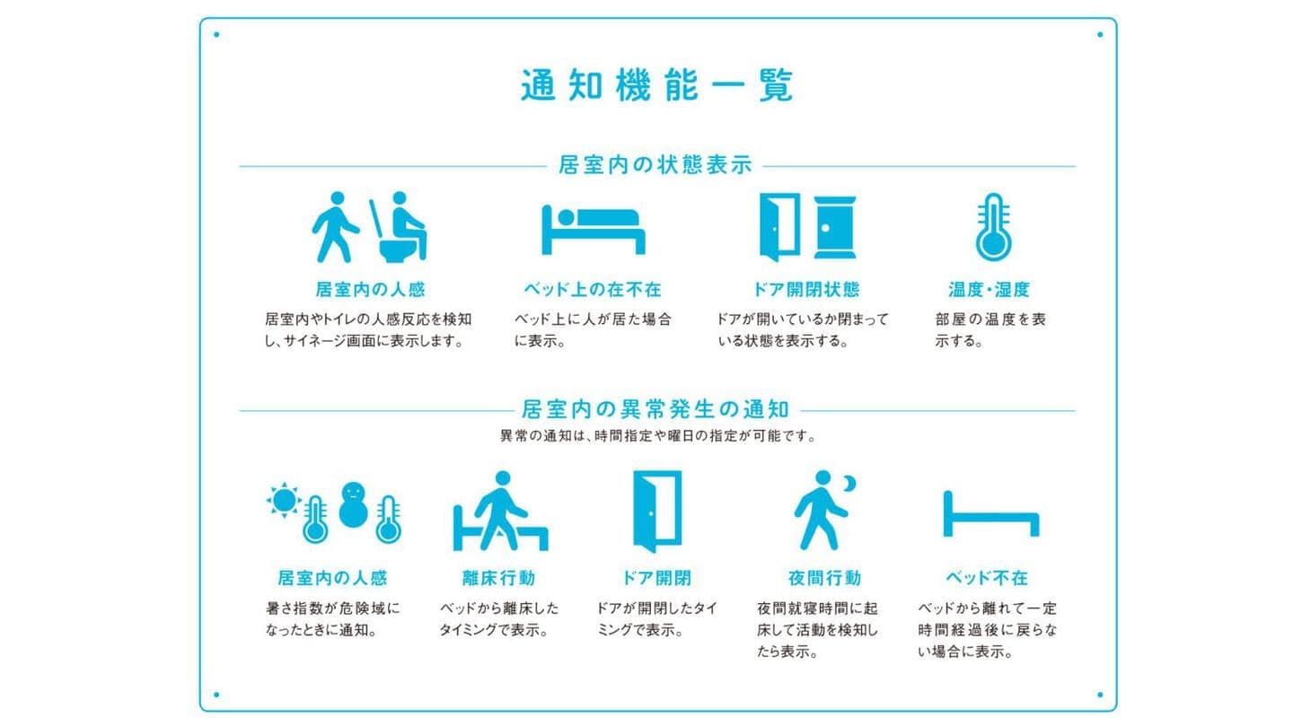 複数のセンサーがご入居者様の状態や行動を可視化